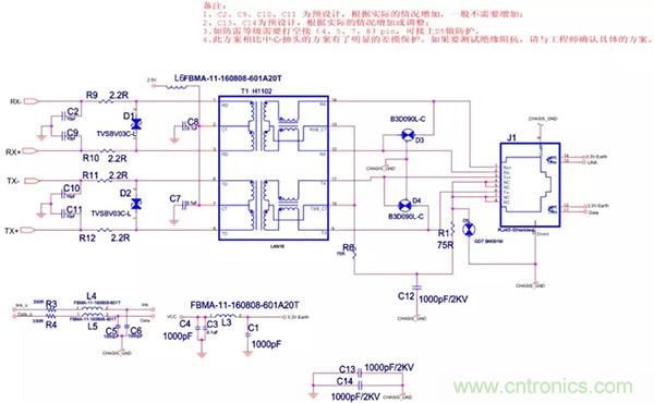 30、以太網EMC(浪涌)設計標準電路(差模要求較高方案)