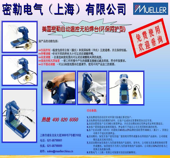 Mueller自動溫控無鉛焊臺免費使用活動條款: