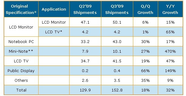 Source:DisplaySearch Quarterly Large-Area TFT LCD Shipment Report