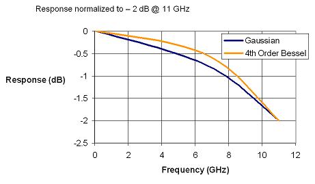 Gaussian響應在-3dB之后仍衰減很慢。其優點是允許被測信號的更高頻率成分的諧波能量通過放大器(這是假定其有采樣率遠超過Nyquist),對于特別快的快沿測量有幫助。其缺點是在低頻段使被測信號嚴重衰減,特別是對3次諧波的衰減嚴重,導致眼圖測量中產生"花生眼"。