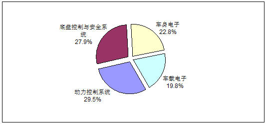 圖2 2008年中國汽車電子市場應用結構