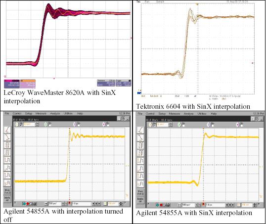 所有示波器在使用SinX內插時都展現很緊的余輝曲線,與沒有內插時生成的余輝曲線匹配。由于31 ps邊沿提供了示波器看到的任何邊沿中最大的頻率成分,這一結果表明對所有示波器,SinX內插在20 GS/s的最大采樣率時最有效,而不管應用的信號如何。