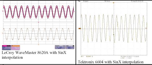 力科WaveMaster 8620A,使用SinX內插 泰克6604,使用SinX內插