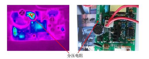 大的器件,所以必須加裝散熱片使其長期穩(wěn)定工作溫度不超過120℃;在拍攝熱圖時,散熱片是鋁合金材料經(jīng)過發(fā)黑處理,其表面雖然為黑色但其發(fā)射率還是較低,建議用油漆筆涂黑后進行檢測,或在溫度穩(wěn)定一段時間后直接測量功率管的溫度。