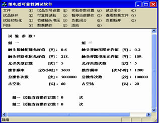 一是實時檢測與處理程序,包括了試驗參數的設置,對試驗狀態以及失效數據的保存,對失效數據進行數學分析,打印報表等,檢測裝置記錄的失效數據有失效時間,失效試品號、觸點號,觸點失效的類型,失效時觸點電壓以及各觸點累計失效次數等;