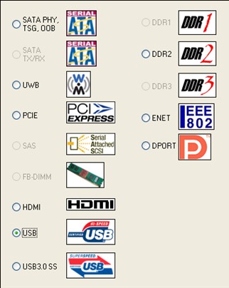 QualiPHY軟件集成了多種串行協(xié)議,不僅支持USB2.0協(xié)議,而支持其他流行的串行協(xié)議諸如SATA、UWB、PCIE、SAS、FBDIMM、HDMI、DDR2、ENET等,如下圖所示。不同的串行協(xié)議采用相同的用戶界面和操作方法,工程師無需重復學習,舉一反三即可快速掌握全部協(xié)議的一致性測試流程。