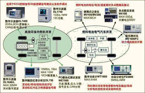 本文針對汽車研發過程中所涉及到的發動機分析、驅動分析、振動分析、環境影響、燃料電池效率分析、CAN總線分析等方面,介紹橫河電機提供的各種測試解決方案(圖1)。