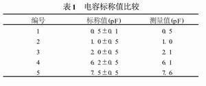 現(xiàn)對(duì)5個(gè)標(biāo)稱值已知的片式電容在300M~3000MHz的頻率范圍內(nèi)測量,所得數(shù)據(jù)與生產(chǎn)廠家給出的電容標(biāo)稱值進(jìn)行比較,如表1所示。