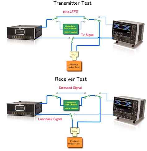 由于USB3.0的速率高達5Gbps,在USB3.0規范中接收機測試成為必測項目。接收機測試包括了誤碼和抖動容限測試兩部分。