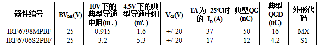 - IRF6706S2PbF小罐DirectFET也具備低電荷和低導通電阻