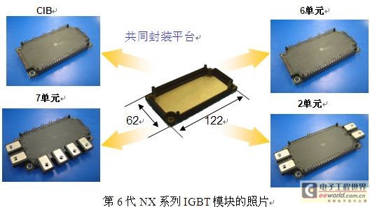 第6代NX系列IGBT模塊產(chǎn)品豐富,包括1200V和1700V兩個(gè)電壓等級(jí),額定電流從35A到1000A,分別有CIB (Converter Inverter Brake)、七單元、六單元、二單元和一單元模塊,共5種電路拓?fù)洹H盗挟a(chǎn)品采用同一封裝平臺(tái)從而降低了模塊的制造成本,使得NX系列IGBT模塊的性?xún)r(jià)比具有不同尋常的競(jìng)爭(zhēng)力。