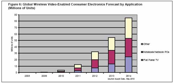 - 2014年,逾5300萬個此類設備將是支持無線視頻的數(shù)字電視和面向消費類上網(wǎng)本/筆記本