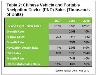 盡管2009年中國市場(chǎng)的乘用車(PV)和輕型卡車銷量接近1230萬輛,躍居全球最大的汽車市場(chǎng),但包括OEM和售后in-dash在內(nèi)的車載導(dǎo)航配售率只有7%左右。