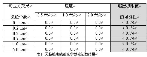 表2.裝有高柔性扁平電纜的電纜拖鏈A在每個(gè)測(cè)量點(diǎn)產(chǎn)生0個(gè)微粒