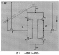 假設(shè)準(zhǔn)備往圖2的6T存儲(chǔ)單元寫入“1”,先將某一組地址值輸入到行、列譯碼器中,選中特定的單元,然后使寫使能信號(hào)WE有效,將要寫入的數(shù)據(jù)“1”通過寫入電路變成“1”和“0”后分別加到選中單元的兩條位線BL,BLB上,此時(shí)選中單元的WL=1,晶體管N0,N5打開,把BL,BLB上的信號(hào)分別送到Q,QB點(diǎn),從而使Q=1,QB=0,這樣數(shù)據(jù)“1”就被鎖存在晶體管P2,P3,N3,N4構(gòu)成的鎖存器中。寫入數(shù)據(jù)“0”的過程類似。