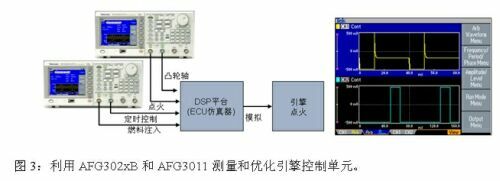 汽車ECU根據放在汽車各處的傳感器傳回的數據實時計算信息,確定最佳的引擎控制參數值。由于ECU內置到汽車引擎室中,噪聲環境更加惡劣,同時由于對更高頻率的分析需求也在不斷上升,特別是對微秒級、毫秒級以及甚至納秒級瞬態信號或尖峰的抗擾能力,對傳統示波器和探頭分析納秒級的高頻噪聲提出了挑戰。泰克專家建議降低測量系統的電氣負荷,包括使用低輸入電容的差分探頭。泰克專家還針對部分工程師希望利用信號源進行動力系統電子控制單元現場仿真測試提供了基于信號源的測試方法,例如利用AFG3000系列函數信號發生器仿真各種汽車傳感器信號,如壓力、溫度、速度、旋轉和角度位置,對汽車應用中的引擎控制單元進行功能測試和優化。