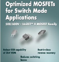 開關電源的設計人員需要能夠耐受反向電流尖刺并降低開關損耗的高電壓MOSFET器件,飛兆半導體公司(Fairchild Semiconductor)憑借精深的MOSFET技術知識,開發出經優化的功率MOSFET產品UniFET™ II MOSFET,新產品具有更佳的體二極管和更低的開關損耗,并可在二極管恢復dv/dt模式下耐受雙倍電流應力。