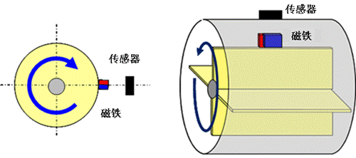 通過(guò)讓傳感器靠近和遠(yuǎn)離磁鐵來(lái)控制電路的方法,較為普遍的就是使用在蓋或門(mén)的開(kāi)關(guān)部分,比較容易想象。若在磁鐵上安裝齒輪或羽毛,還能夠作為液體或氣體的流量計(jì)使用(如圖6)。另外還可以用來(lái)檢測(cè)可脫卸的零件在使用時(shí)的安裝位置是否正確。