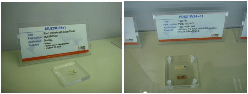 同期,三菱電機(jī)還展示了新推出的應(yīng)用于G-PON ONU的 DFB-LD, 該款DFB-LD 有著寬tolerance curve 和較小的 beam angle和較小的tracking error等優(yōu)點(diǎn)。在10G xG-PON 方面,公司也新推出了應(yīng)用于ONU的1.27μm DFB-LD。為無(wú)源光網(wǎng)絡(luò)的發(fā)展提供了必要的支持。[page]