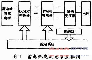 本文蓄電池充放電裝置采用以電壓型脈沖整流器為核心的方案。PWM控制方式能方便地實(shí)現(xiàn)能量的雙向流動,根據(jù)電網(wǎng)的不同,可以采用單相或三相PWM脈沖整流器。系統(tǒng)原理如圖1所示。