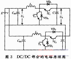 圖3所示的DC/DC變換器不但能對直流輸入電壓進(jìn)行變換處理,而且還可以對直流輸入電流進(jìn)行調(diào)節(jié)和控制,在DC/DC階段實(shí)現(xiàn)能量調(diào)控。