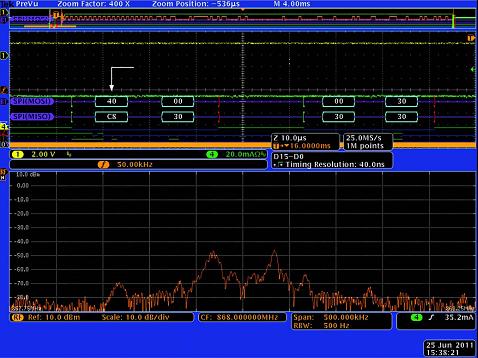 下面我們以一個(gè)13.56MHz的RFID讀寫器系統(tǒng)為例,介紹MDO4000的跨域調(diào)試應(yīng)用。