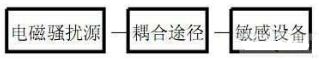 電磁干擾( EM I)是指電磁騷擾引起的設(shè)備、傳輸通道或系統(tǒng)性能的下降。形成電磁干擾必須具備三個要素, 即: 電磁騷擾源、耦合途徑和敏感設(shè)備。三者關(guān)系如圖1所示。