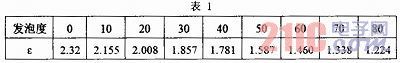 對(duì)于發(fā)泡電纜,ε與發(fā)泡度有直接聯(lián)系,PE材料發(fā)泡度與電容的關(guān)系參見表1。