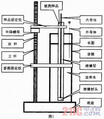 將被測(cè)樣品下端用絕緣物質(zhì)封住端口,放入盛有自來(lái)水的容器,利用樣品固定板將樣品固定。由于水是導(dǎo)電液體,流動(dòng)性好,能夠均勻地包裹在絕緣層外面,在水中插入一根導(dǎo)線(裸銅線),相當(dāng)于在絕緣層外增加一個(gè)電極。將電容測(cè)試儀的測(cè)量夾,分別連接到內(nèi)外兩個(gè)導(dǎo)體,即可測(cè)量外導(dǎo)體和內(nèi)導(dǎo)體之間的電容值。