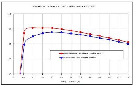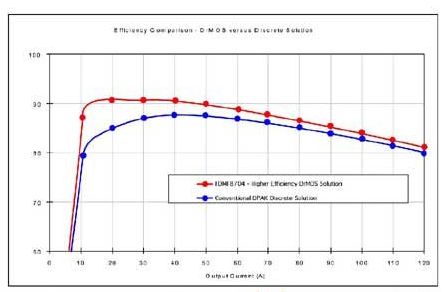 帶有Power56 MOSFET和SO-8驅(qū)動(dòng)器的分立式解決方案的板卡占位面積在120mm2左右,而MCM只需要64mm2或36mm2。后者模塊中的各個(gè)器件經(jīng)精心挑選并全面優(yōu)化,相比分立式解決方案其性能更高,熱性能也更好 (圖6和圖7)。受電腦行業(yè)的推動(dòng),這種解決方案可使電流高達(dá)30A,并針對(duì)最高1MHz的開(kāi)關(guān)頻率優(yōu)化。甚至在大電流設(shè)計(jì)中即使考慮到熱設(shè)計(jì)規(guī)則,也無(wú)需散熱器,因系統(tǒng)中空氣流對(duì)于該芯片散熱是足夠的。[page]