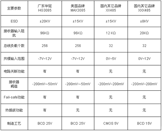 HG3085與MAX3085主要參數(shù)對(duì)比