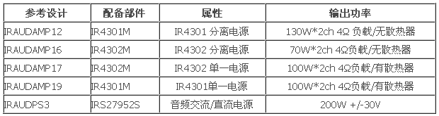 這些器件的其他主要功能包括過流保護、熱關斷、內/外部關閉和浮動差分輸入。IR4302M還具有削波檢測功能。此外,IR還提供一系列參考設計,進一步簡化采用這些器件的系統設計。