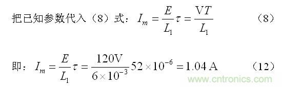 開關變壓器的工作電壓和脈沖寬度的關系,可以根據(8)式求得。在選定工作電壓的情況下,可把Im = 0.7 Imax代入(8)式,即可求得最大脈沖寬度
