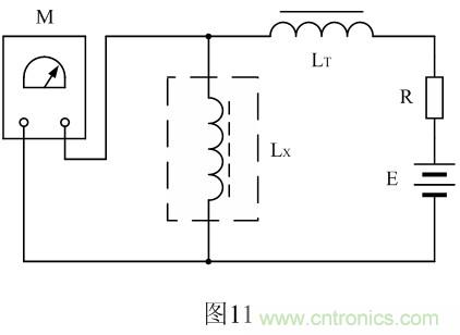 這里順便說明,采用圖7測試時應該注意的地方。圖7中,隔離電感LT的數值要求是測試電感Lx數值的3倍以上,并且測量高壓包初級線圈的初始電感值L0時,最好也要接入電路之中。這里,隔離電感LT可選取20毫亨以上的矽鋼片直流電感,電感的鐵芯要留有氣隙;流電源可用一個穩壓電源與一個大功率電阻串聯代替,如圖11,或用一個穩壓電源與一個大功率晶體放大器串聯來代替,如圖12。