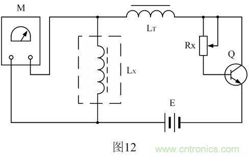 在圖11中,E為穩壓電源,Rx為可調電阻,Q為晶體管大功率放大器(必須帶散熱片);調節穩壓電源的輸出電壓,或改變可變電阻的阻值,就可以改變迭加電流的大小,但晶體管大功率放大器集電極與發射極之間的電壓降不要大于10V,否則,晶體管大功率放大器的損耗將很大。一般穩壓電源都有電流輸出指示,所以在測試電路中不需要另外安裝電流表。