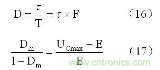 然后再根據脈沖寬度進一步求占空比D和工作頻率。下面(16)式和(17)式是計算脈沖寬度