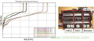 豐田的目標是優化流程,在短時間內實現高度準確和可重復的結果,因此更加富有效率。“T3Ster 使我們能夠詳細地了解器件的結構以及其熱流路徑。它清晰地顯示了被測量半導體器件附近熱阻的差異,在進行可靠性測試前后可以檢驗測量結果,從而找出散熱特性的任何變化。”在測量模塊的所有器件時,豐田還能夠檢測結構的細節,即使是已封裝的半導體器件。“我們甚至還能測量與設計值相匹配的粘結材料”。在T3Ster設備的幫助下,豐田能夠向設計人員迅速地反饋高度準確的結果,從而進一步改善設計。從導熱硅脂厚度到粘結狀態一切的情況都可以進行優化。在這之前,豐田無法檢驗產品的狀態和已封裝的半導體器件附近的散熱狀況。