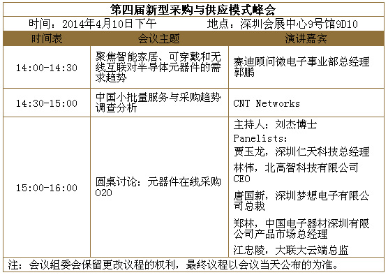 此次峰會旨在幫助供需雙方的經理人了解熱點市場帶來的對半導體元器件的需求變化,中國小批量供應服務與采購趨勢。圓桌討論將針對采購和供應中的熱點話題,中國電子分銷商聯盟秘書長劉杰博士與行業領先的國內和國際分銷商總裁和總監們逐一分享思路,歡迎參與互動。參會可以通過網上或微信(關注我愛方案網),報名注冊:www.shuilikongzhifa.com/seminar/95/agenda