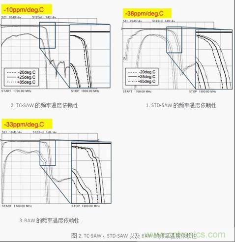 TC-SAW、STD-SAW以及BAW的頻率溫度依賴(lài)性的比較