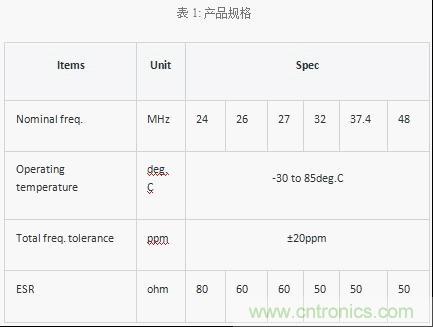 ESR值小的話,就有可能促使在設(shè)計(jì)電路時(shí)容易讓IC與晶體振蕩子形成匹配。基本上來說ESR和晶體振蕩子的大小成反比,所以伴隨著晶體振蕩子的小型化特征的推進(jìn),ESR值就會(huì)變大,Cap Chip構(gòu)造是在陶瓷平板上用金屬帽進(jìn)行封裝的簡單構(gòu)造,因此包裝內(nèi)的空間利用效率較高,和一般的晶體振蕩子相比由于產(chǎn)品尺寸比的關(guān)系,可以搭載大型的晶體元素。因此與同一尺寸的晶體振蕩子相比降低了ESR值。