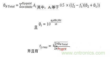 本文將采用低抖動時鐘發生器AD9523為雙通道、14位、250 MSPS ADC AD9643提供時鐘。 使用這些產品后,常見的時鐘頻率為245.76 MHz,因此針對AD9523將采用30.72 MHz基準電壓源(外部振蕩器),并設置內部寄存器,以生成AD9643的低抖動時鐘輸出。根據時鐘輸入和相位噪聲的抖動計算公式: