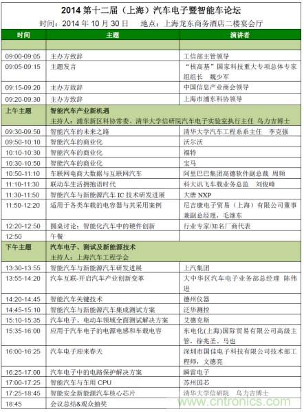 【導(dǎo)讀】我愛方案網(wǎng) (www.52solution.com)、電子元件技術(shù)網(wǎng) (www.shuilikongzhifa.com) 攜手中國電子展、清華大學(xué)、上海市浦東新區(qū)科學(xué)技術(shù)協(xié)會(huì)、上海市汽車工程學(xué)會(huì)順應(yīng)時(shí)勢,將在2014年10月30日共同主辦第十二屆(上海)汽車電子暨智能車論壇。