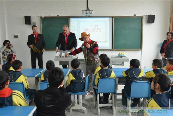 在本次活動上,TI同時開展了“TI魔力芯動課堂”特色科學興趣課程。來自TI的志愿者們設計了電子科學相關的趣味教具和課件,并親自為小學生們授課。該課程的設計旨在借由益智的電子教具,通過動手實踐使學生體驗電子科學的奧妙。此次,TI高級副總裁、全球技術與制造部總經理Kevin Ritchie也擔任了志愿者講師,并生動形象的向小學生介紹了晶圓、芯片、電路板和電子產品的關系。