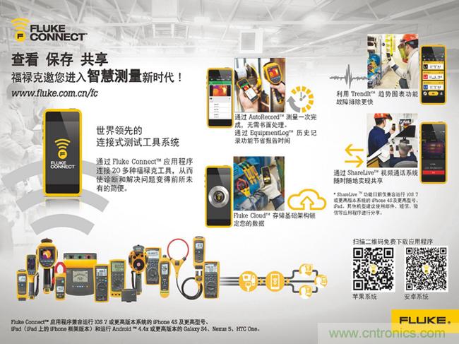 【導讀】福祿克測試儀器(上海)有限公司日前宣布,推出世界領先的連接式測試工具系統Fluke Connect™,跨入智慧測量新時代!新推出的 Fluke Connect™ 系統,可將測量數據從測試工具傳送到智能手機和云空間,使維護團隊的溝通、安全性和工作效率得到改善。