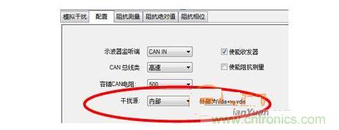 打開CANStress配置,將干擾源確定為內部。保證CANL對地短路。如圖 7所示。