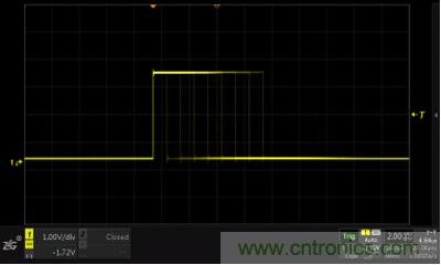 對于周期性的波形信號來說,自動測量相對于光標測量來說,統計的數據量多,測量結果為統計數據的平均值,相對來說更加準確。但是如果信號噪聲很大,自動測量則有可能將噪聲也統計進去,所得結果也會有較大誤差。自動測量項目一般為常規項目,當有特殊需求時,自動測量便無能為力了,比如測量下圖抖動波形。
