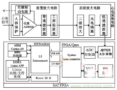 【導讀】本設計實現了一種基于片上系統現場可編程門陣列(SoC FPGA) 的心電信號(ECG)檢測系統。系統通過具有高輸入阻抗、高共模抑制比和低噪聲的前置采集放大電路,實現心電信號的拾取和預處理。