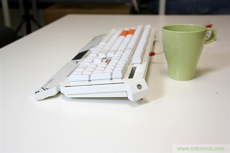 鍵盤四個角都有純白色塑膠腳墊,四個腳墊在統(tǒng)一水平面上,受力面均勻。塑膠彈性稍小,不會因為受力造成大幅度變形。
