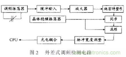 如圖3所示,由于采用了最新的大規(guī)模集成電路,電感傳感器的檢測(cè)電路比較簡(jiǎn)單,且集成電路采用了新的調(diào)制解調(diào)方法和算法,減少了以前的檢測(cè)外差式調(diào)頻檢測(cè)電路方法由于傳感器的激勵(lì)信號(hào)的相角、頻率以及幅值漂移對(duì)檢測(cè)結(jié)果的影響,大大進(jìn)步了檢測(cè)精度和穩(wěn)定性。