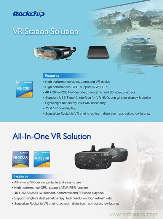作為中國VR解決方案布局最早的芯片商,CES2017瑞芯微展示了成熟可產量的VR終端設備,包括可支持語音識別的VR一體機及VR分體機,并且可支持VR攝錄機的SD卡直接播放功能。